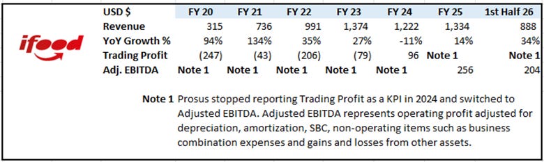 Prosus has concentrated their efforts on five core sectors (food, fintech, classifieds, travel, and experiences) within the hubs of Latin America, India and Europe. This operational pivot is already yielding record breaking results. The first half of 2026 marked Prosus’s first period of positive free cash flow (excluding Tencent[12]), consolidated ecommerce revenue increased 22%, and consolidated EBITDA surged 70%, respectively YoY. This data provides compelling evidence of proof of concept for Bloisi’s ecosystem strategy. If he can successfully integrate the large investments made in 2025[13] we would expect to see sustained growth and profitability for the company.