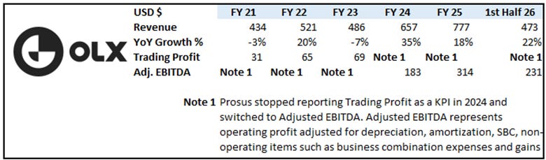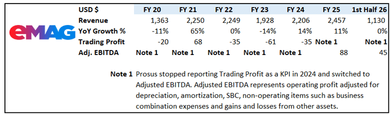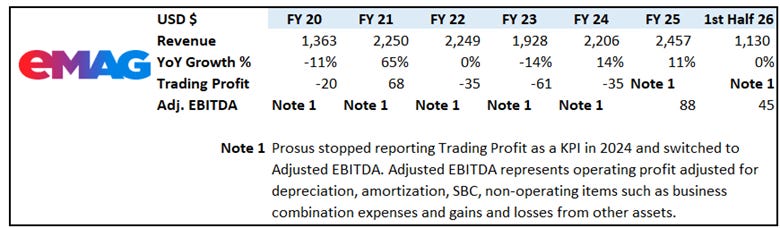 · Inflection Point in Ecommerce: Historically, Prosus used dividends and sales of Tencent stock to fund loss-making acquisitions. This is no longer the case. As of 2025, all wholly owned subsidiaries are EBITDA[3] positive. Core EBITDA (ex. Tencent) is expected to almost triple between FY 2025 ($430 million) and FY 2026 ($1.1 billion).