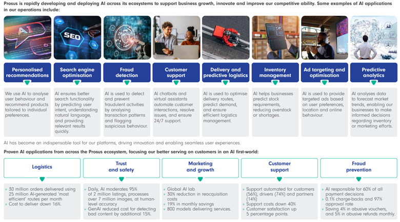 · EdTech: Through Stack Overflow Prosus is building OverflowAI a suite of generative AI tools designed to assist developers with coding. It leverages Stack Overflows database of human-verified, peer-reviewed technical questions and answers, prioritizing accuracy trust. This is similar to Reddit’s sale of its data for AI training which has been very successful for the company.